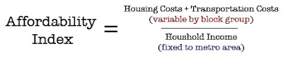 Cox thinks a true "neighborhood index," as he phrases it, would grab the income number for each block group instead of fixing it for the whole metro area. This would be an accurate portrayal of the housing and transportation cost burden being felt by the current residents of the block group.However, Cox's alternative quickly descends into absurdity as a measure of affordability, which is the question that an affordability index is naturally asking. For instance, it's quite possible that Cox would have to consider the Beverly Hills neighborhood of Los Angeles County to be affordable, simply because the preponderance of it's uber-weathy denizens happen to have plenty of money to afford living there. We all know that different income groups separate themselves out according to their ability to pay - indeed this is the definition of exclusivity - but the point of the affordability question is to ask how the rest of us would fare in the particular location. Someone finds a job (income is now fixed) and wants to know where within the metro area she can afford to live. That's the question being asked.